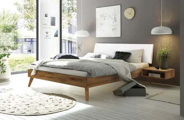 La ligne Trento dégage une impression de sécurité et de proximité grâce à l'utilisation de bois massif. Les joints d'angle confèrent au lit un aspect moderne ; toutes les parties sont visuellement équilibrées. Robustesse et longévité sont les caractéristiques de Trento. La structure fine du cadre de lit peut être démontée et remontée un nombre incalculable de fois, tout en conservant sa force et sa stabilité d'origine.
