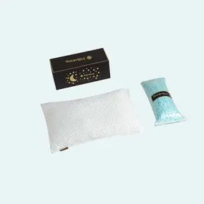 - L'explication : l'intérieur est composé de mousse à mémoire de forme (viscoélastique) déchiquetée. Grâce à la fermeture éclair de la housse intérieure, vous pouvez ajouter ou retirer du garnissage. Vous dormez sur le côté et aimez un soutien plus ferme ? Laissez le garnissage tel quel. Vous créez ainsi la hauteur et la fermeté qui soutiennent votre nuque.