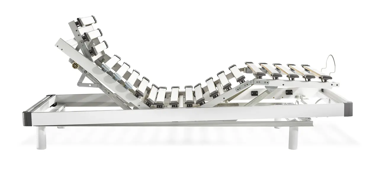 Le Sensitec III Plus est également disponible avec un système de relaxation sur toute la longueur, réglable manuellement. Ce système offre un réglage spécial du sommeil en inclinant légèrement l'extrémité du pied, ce qui place les pieds au niveau du cœur. Ce système favorise la circulation sanguine et est idéal pour les personnes ayant des problèmes de jambes lourdes.